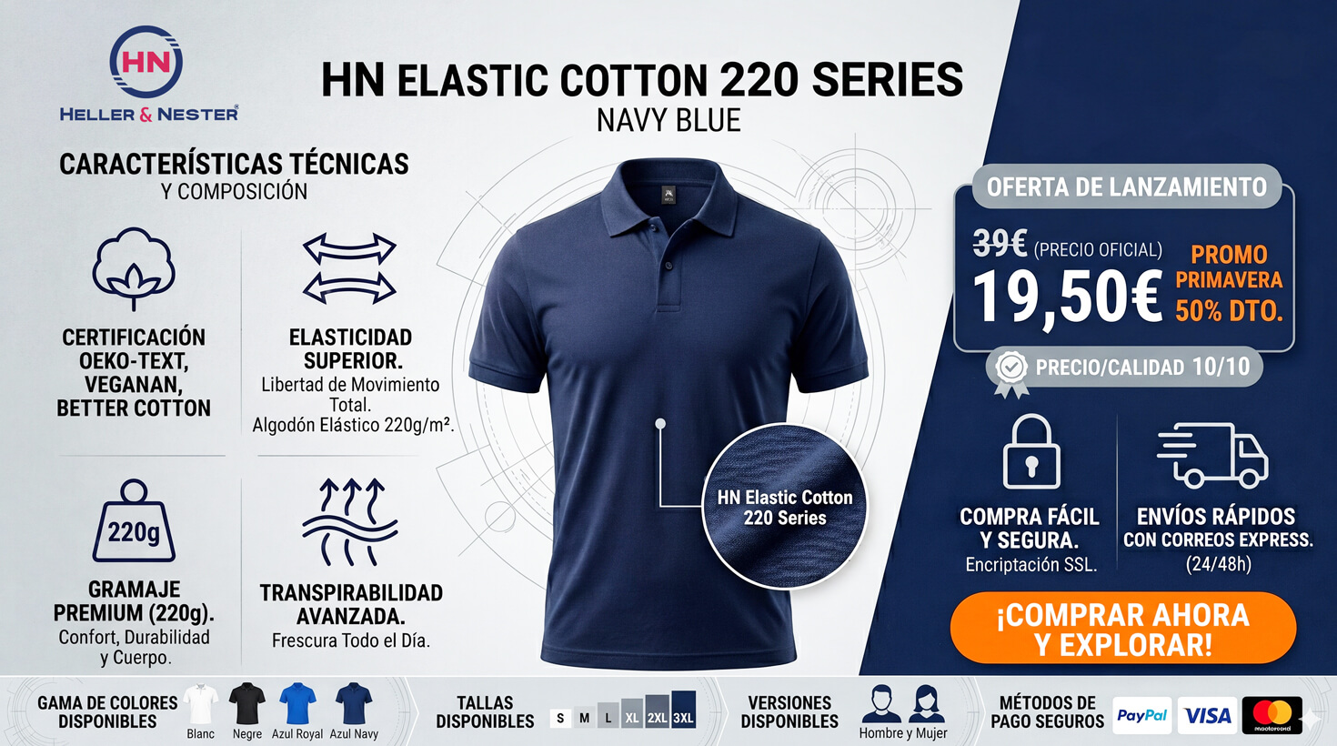 Nuestra mejor Promoción de Primavera con 50% de descuento. Ya tienes el nuevo Polo HN Elastic Cotton que te quedará con un excepcional ajuste.