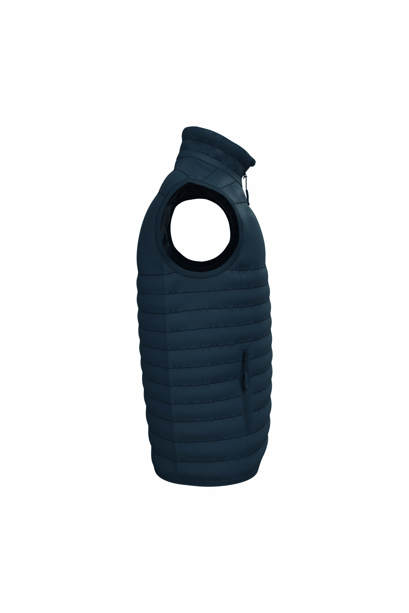 Detalles: Cuello alto · Cierre frontal · Bolsillos exteriores e interiores con cremallera · Acabados elásticos en sisas y bajo