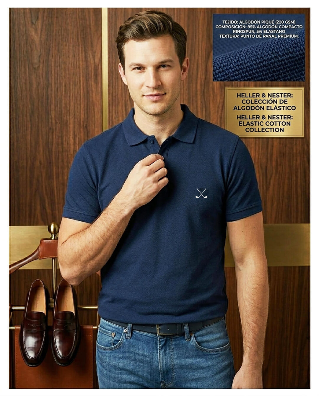 El Polo HN EcoBoss Azul Navy está confeccionado en algodón 100% orgánico ecológico cultivado sin pesticidas ni fertilizantes químicos. Un algodón peinado de 210g/m² que te da la solidez y el tacto que esperas de un polo premium, con la diferencia de saber exactamente cómo ha llegado hasta ti — sin atajos, sin compromisos.