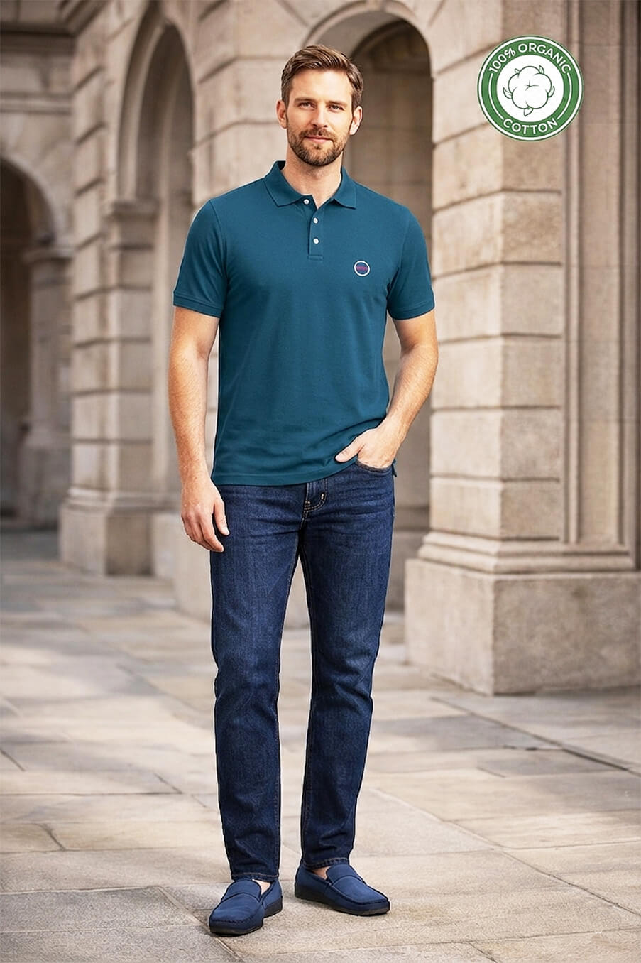 Polo HN EcoBoss 100% Algodón Orgánico 220g/m² – Azul Peacock